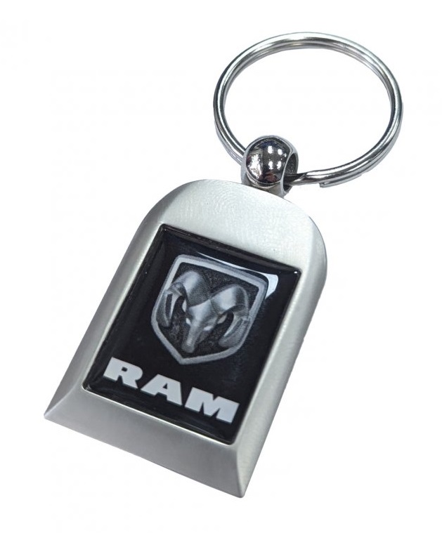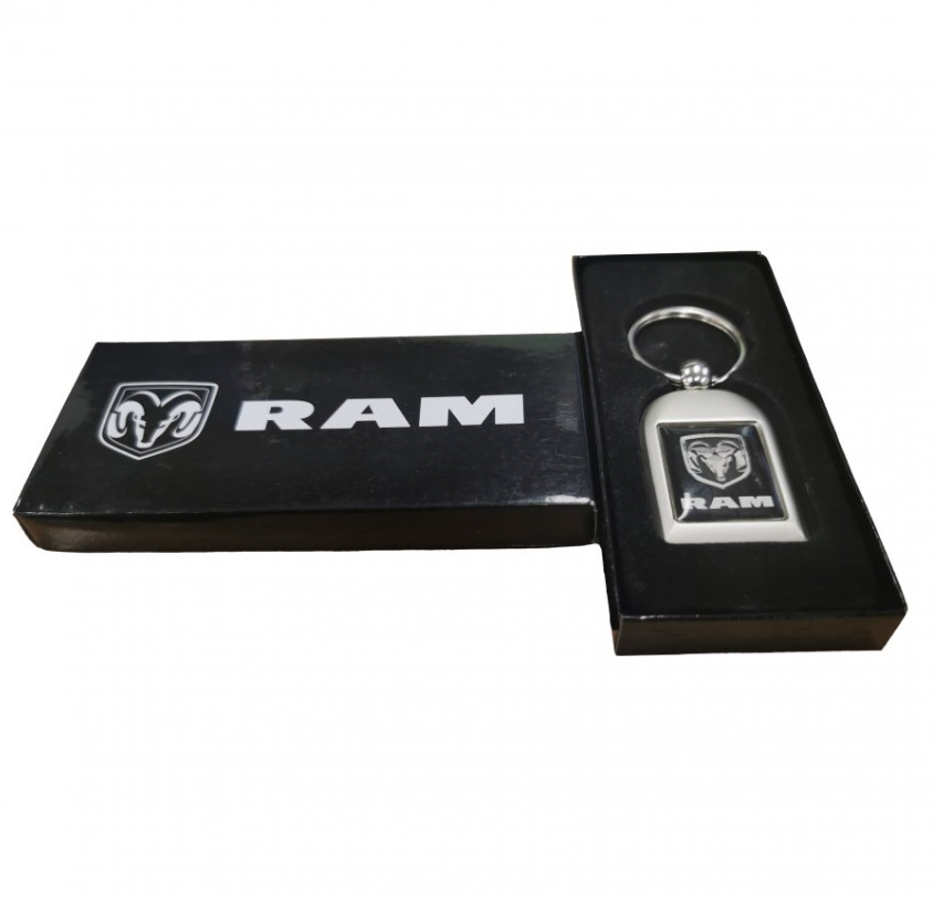 High quality metal custom logo keychain features a large logo area on both sides. The swivel ball connector spins freely so keys fit easily in your pocket. Perfect for minimalists! Branding: Full Color Stacked RAM Logo under Epoxy Dome Front. QR Code Chemically Etched Back. Printed Horizontal Ram Logo to Box Lid in White