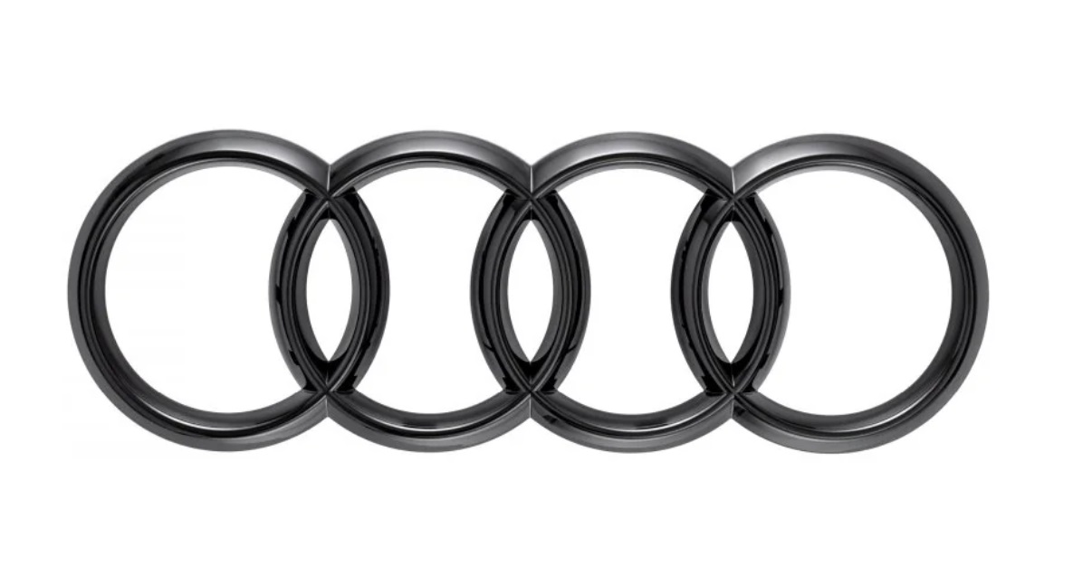 Audi rings, high-gloss black with adhesive tape, for the rear tailgate.